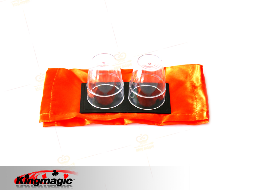 a scarf covered in two cups filled with water, then a magician with a middle finger extended in a cup, stir up this scarf, you can also follow the cup full of water emptied ...
